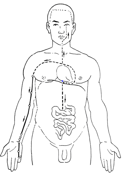 - ①取穴原则。阳日(日天干属阳),阳时(日天干属阳)取阳经穴;阴日(日天干属阴),阴时(日天干属阴)取阴经穴。